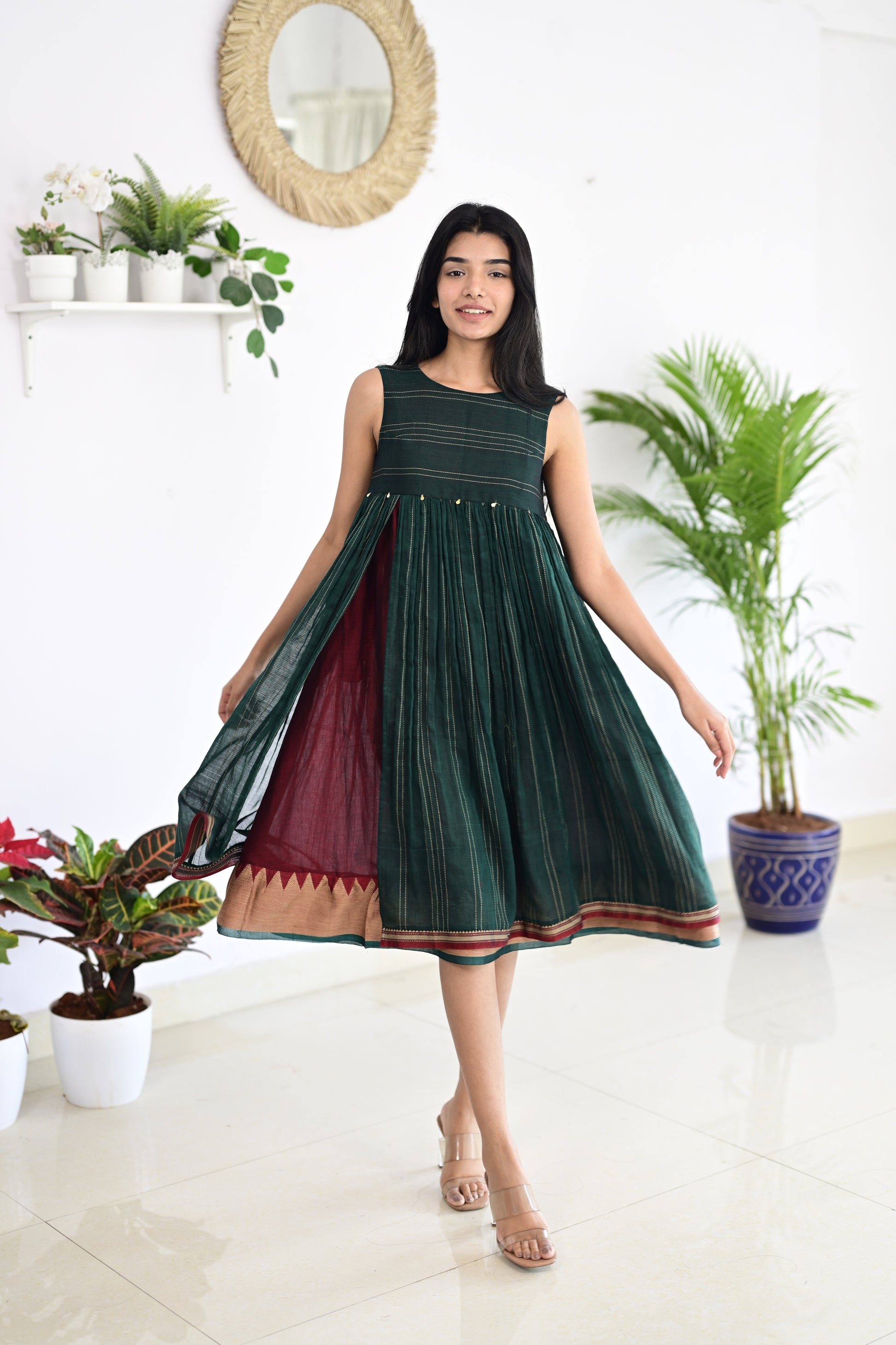 Green and Maroon Dress