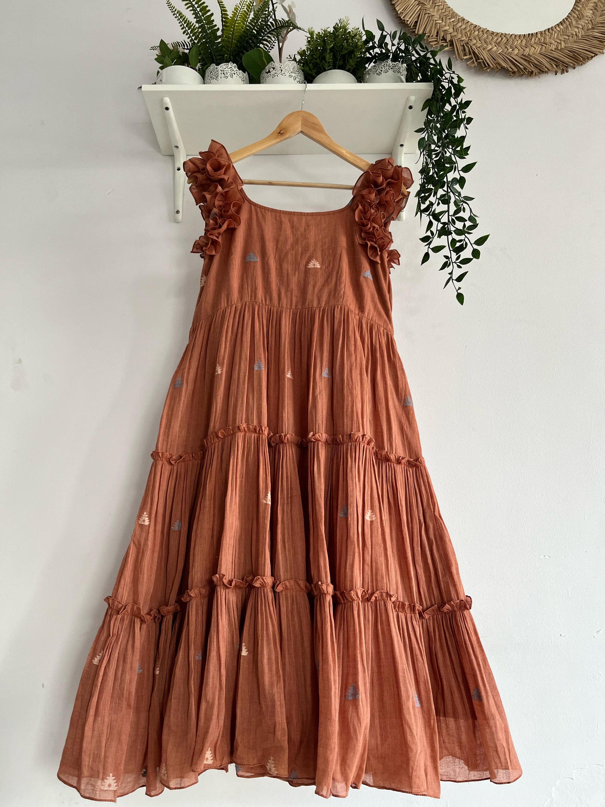 Sand Dune: Dark Beige Multi-Tiered Jamdhani Dress